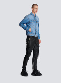 Denim jacket with zip fastening - Classic shirt collar - front fastening with silver Balmain embossed buttons - buttoned cuffs - two flap pockets on the chest - two zipped side pockets - zip around the waist - Relaxed fit - True to size (select your usual size) - The model is wearing a size IT 48 - The model's height is 189 cm - Material: 100 % cotton - Made in Italy - Item: AH1TC230DC99