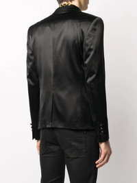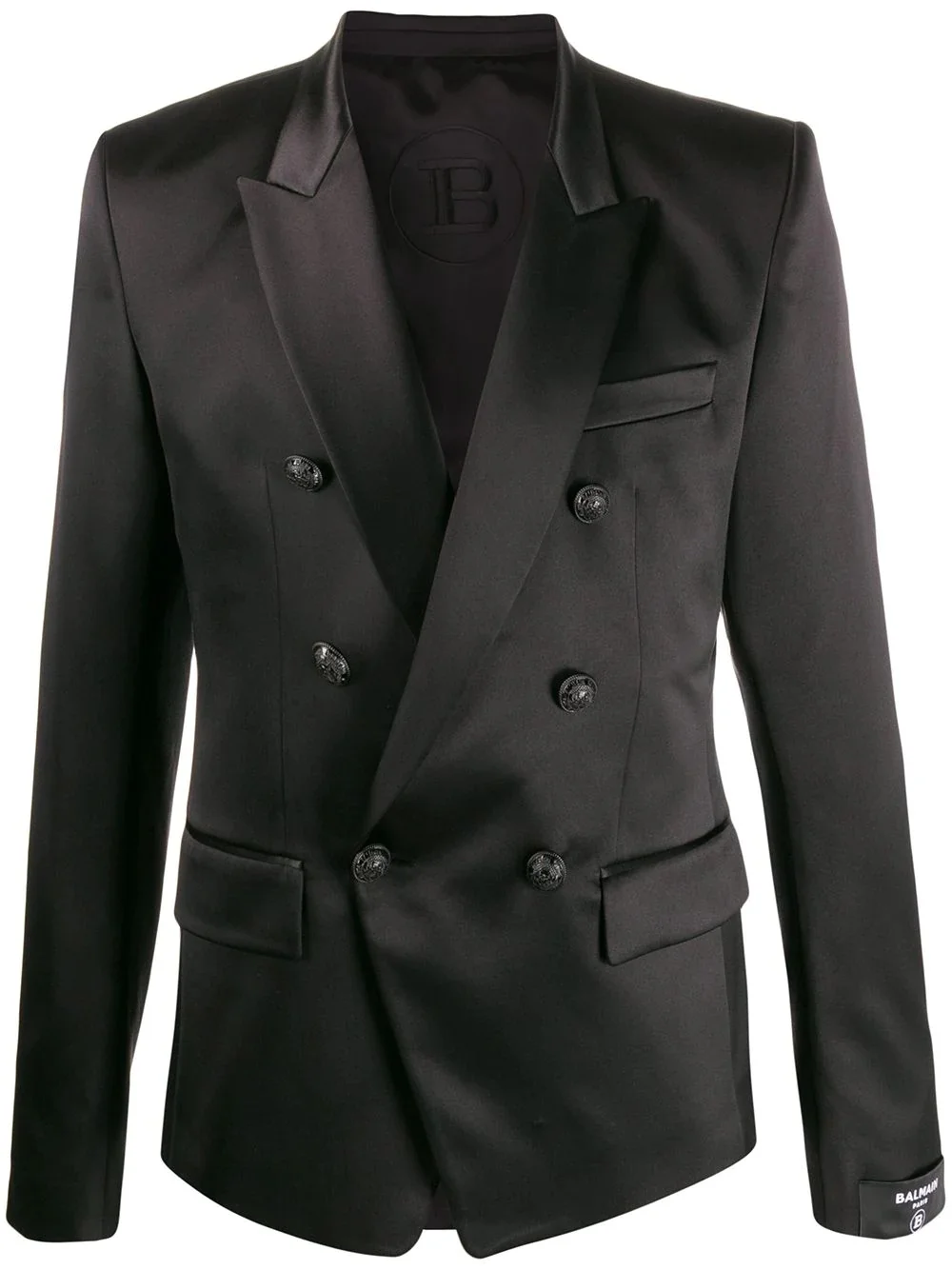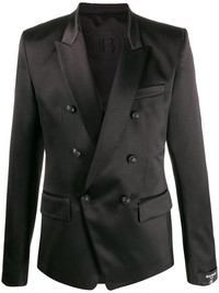 double-breasted blazer Who knew you could look so sleek? Presented in a double-breasted shape, this black silk Balmain blazer is a showstopper. The answer to the question: we did. Highlights - Black - Silk - Peak lapels - Double breasted button fastening - Chest patch pocket - Long sleeves - Two front flap pockets Imported Composition Outer: Silk 100% Lining: Cotton 100%, Acetate 65%, Viscose 35% SIZE & FIT Model measurements Height 6 ft 2 in(1.89 m) Bust/Chest 37.79 in(96 cm) Hips 37 in(94 cm) Waist 29.92 in(76 cm) FittingInformation This piece fits true to size. We recommend you get your regular size Cut for a slim fit Made with a mid-weight non-stretch fabric