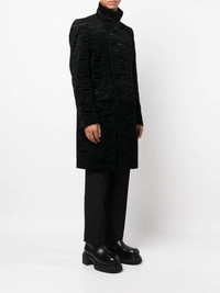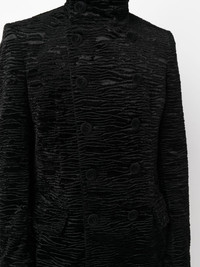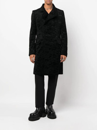 double-breasted cloque coat jet black cloque effect high neck double-breasted button fastening long sleeves two side flap pockets central rear vent mid-length Made in France Composition Outer: Acetate 70%, Polyester 15%, Polyamide 8%, Cotton 7% Lining: Cotton 100%, Cupro 100% SIZE & FIT Model measurements Height 6 ft 2 in(1.87 m) Bust/Chest 38.18 in(97 cm) Hips 36.61 in(93 cm) Waist 29.13 in(74 cm) FittingInformation This piece fits true to size. We recommend you get your regular size Cut for a slim fit Made with a mid-weight non-stretch fabric Washing instructions Dry Clean Only