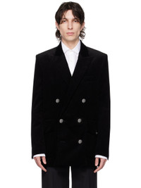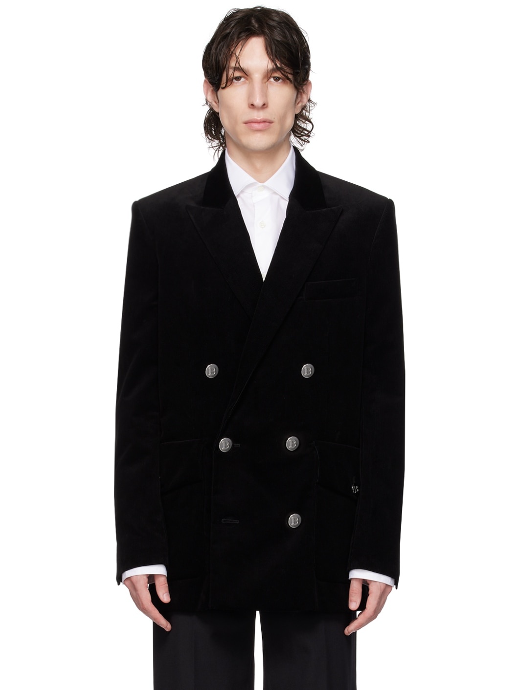 Cotton corduroy blazer. · Peaked lapel · Double-breasted button closure · Welt pocket and flap pockets · Padded shoulders · Three-button surgeon's cuffs · Central vent at back hem · Welt pockets at interior · Full satin lining · Logo-engraved silver-tone hardware Supplier color: Noir