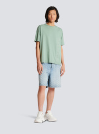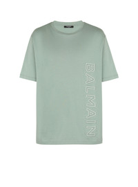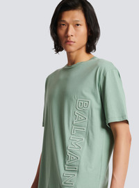 Embossed Balmain logo T-shirt - Classic fit - Raised embossed Balmain logo with reflective edging - Round ribbed neckline - Short sleeves - Model measures 186cm and wears a size M - Materials: 100% cotton - Made in Portugal - Item: AH0EG010BC22 100% of the cotton fibres in this garment are organically grown and GOTS-certified