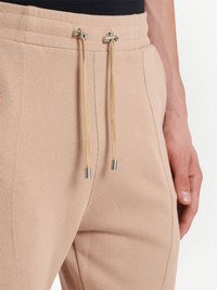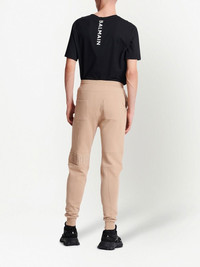 embossed logo track pants A renowned Balmain design, the panelled construction of these track pants speaks to the Maison's biker aesthetic. The piece's rebellious feel is elevated by exposed seams and a tactile logo wrapped around the left leg. Highlights - Beige - Cotton - Elasticated drawstring waist - Raised logo lettering - Stretch ankle cuffs Imported Composition Cotton 100% SIZE & FIT FittingInformation Designed for a slim tapered leg, offering a close fit that sits just away from the leg with a closer fit towards the ankle The elasticated waist allows for a comfortable fit Made from a midweight non-stretch fabric, this piece offers minimal elasticity when worn This piece fits true to size – take your usual size Washing instructions Specialist Cleaning