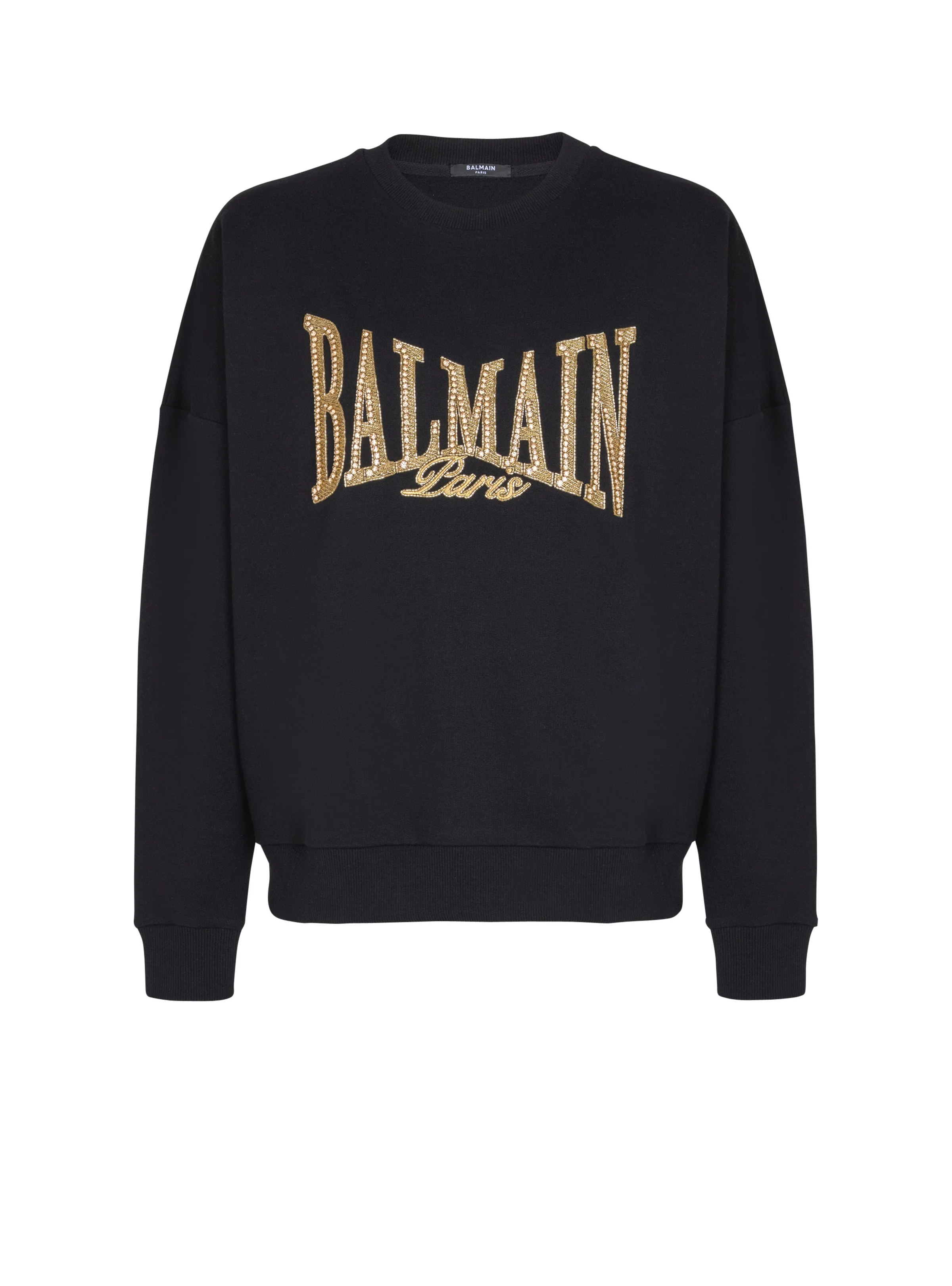 Cotton sweatshirt - Round neckline - Long sleeves - Gold Balmain College logo embroidered on the chest - Boxy fit - Model measures 190cm and wears a size M - Main material: 100% cotton - Made in India - Item: FH0JS205PD28