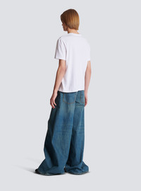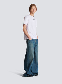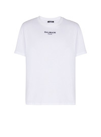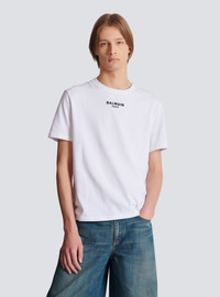 Cotton T-shirt - Round neckline - Short sleeves - Balmain Paris embroidery under the neckline - Regular fit - Model measures 191cm and wears a size M - Main material: 100% cotton - Made in Italy - Item: FH0EG000BD18100% of the cotton fibres used to make this garment are certified and organically farmed