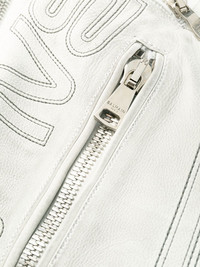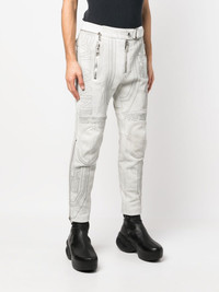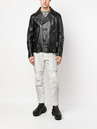 embroidered-design tapered leather trousers white calf leather seam detailing logo lettering embroidered design button fastening belted waist zip fly fastening front zip fastening pockets two rear zip-fastening pockets knee-pad detailing side zip fastening tapered leg Imported Composition Outer: Calf Leather 100%, Polyester 68%, Elastodiene 32% Lining: Viscose 52%, Cotton 48% SIZE & FIT Model measurements Height 6 ft 1 in(1.86 m) Bust/Chest 37.4 in(95 cm) Hips 34.64 in(88 cm) Waist 29.13 in(74 cm)