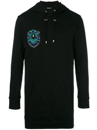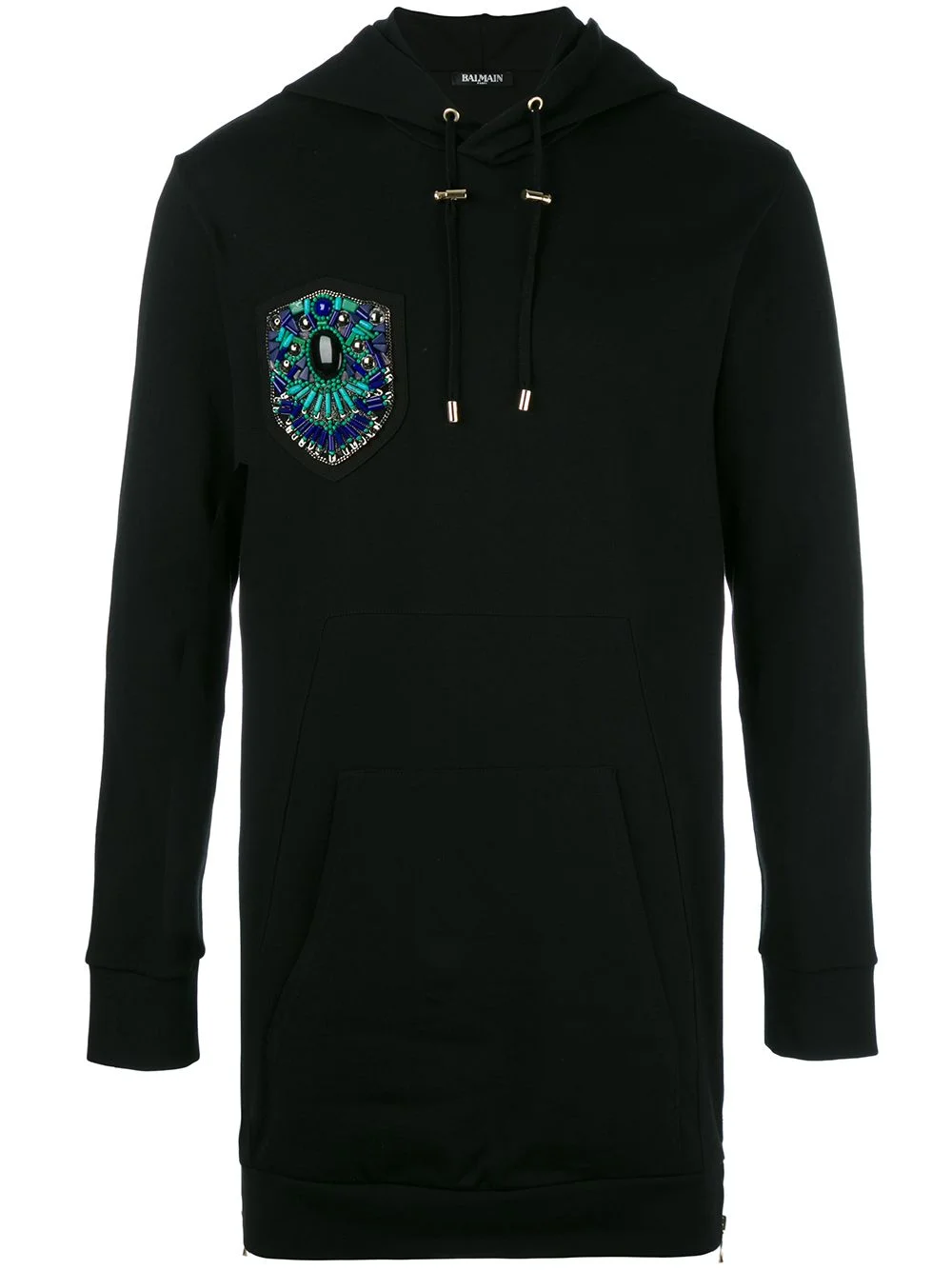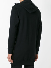 embroidered side zip hoodie Effortlessly exuding the rich style codes of the maison, this embellished Balmain hoodie is an opulent take on a streetwear classic. Exquisitely crafted in France, this black cotton Balmain hoodie redefines athleisure with its beaded embroidery to the chest which features a curb chain trimming and safety pins embellishment. It also features a drawstring hood, a kangaroo pocket, long sleeves and a long length. Made in France Composition Cotton 100% Washing instructions Dry Clean Only