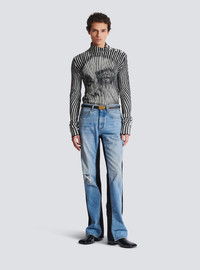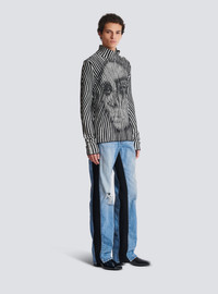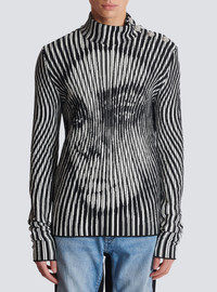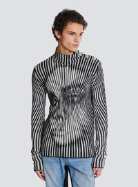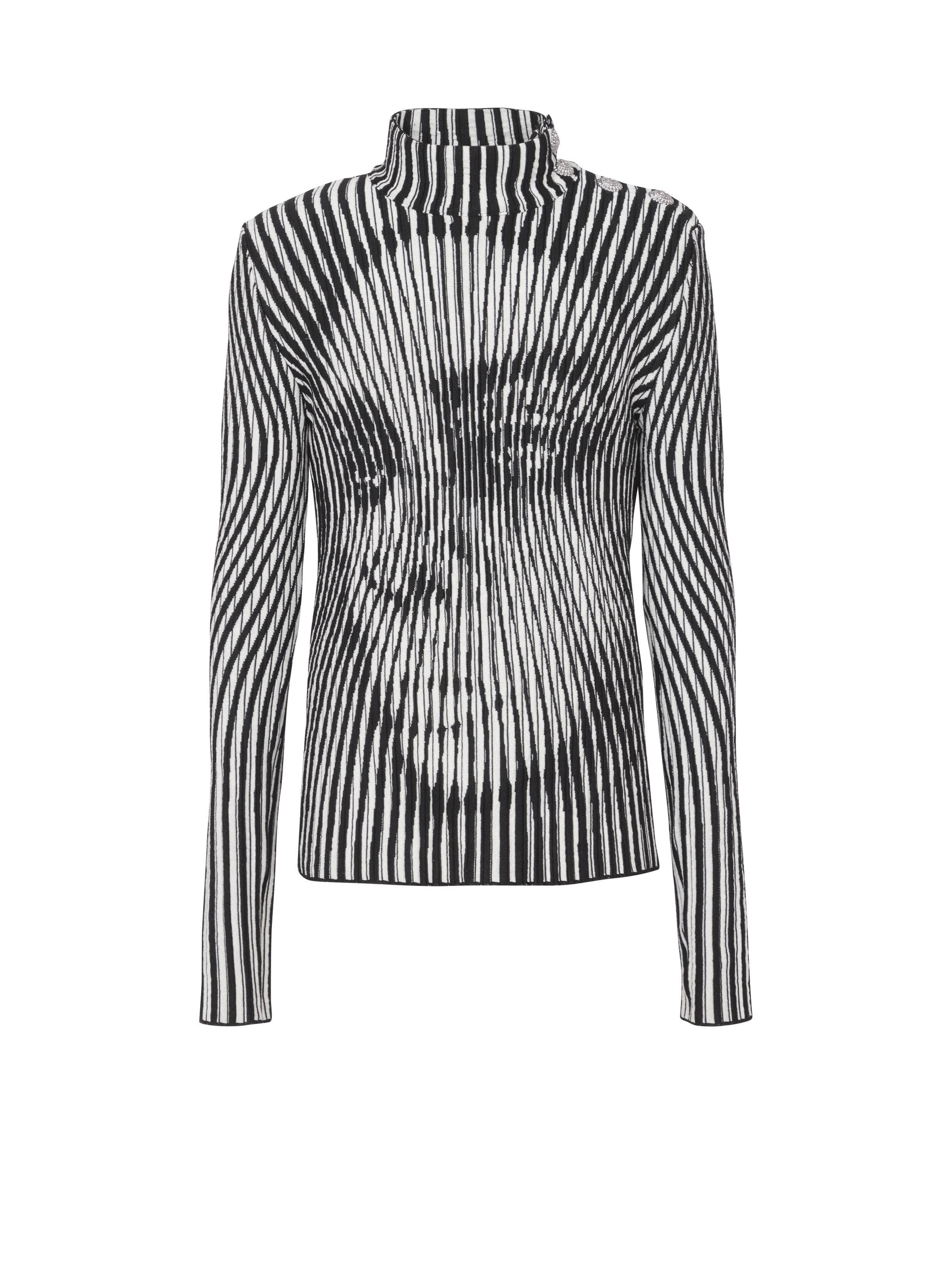 Face two-tone knit jumper - Fitted cut - High collar - Press-stud fastening on the shoulder - 4 "Double Chain Lion" press studs in silver metal - Long sleeves - Optical illusion Face motif in a ribbed knit - Model measures 189cm and wears a size M - Main material: 59% virgin wool 27% cotton 7% polyamide 7% wool - Made in France - Item: DH0KF001KH46