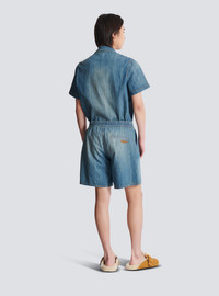 Faded denim shorts - Elasticated waist - Curved side pockets and welt back pockets - Contrasting Balmain Paris embroidery on the back - Contrasting topstitching - Relaxed fit - Model measures 186cm and wears a size M - Main material: 100% cotton - Made in Italy - Item: FH0MA036DG03
