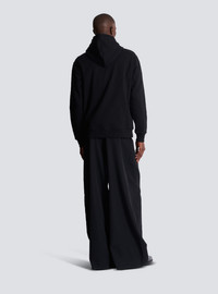 Cotton hoodie - Drawstring and cord stopper - Long sleeves - Flocked Balmain College logo on the front - Front kangaroo pocket - Ribbed edging - Regular fit - Model measures 190cm and wears a size M - Main material: 100% cotton - Made in Portugal - Item: FH0JT047GF25100% of the cotton fibres used to make this garment are certified and organically farmed