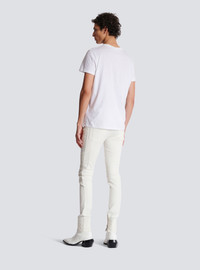 Balmain Paris flocked short-sleeved T-shirt - Classic fit - Round neck with ribbed trim - Contrasting flocked Balmain Paris logo - Model measures 189cm and wears a size M - Main material: 100% cotton - Made in Portugal - Item: DH1EF000BB04100% of the cotton fibres used to make this garment are certified and organically farmed