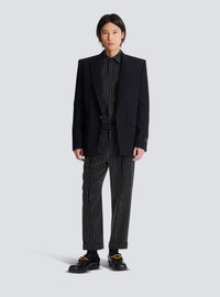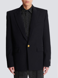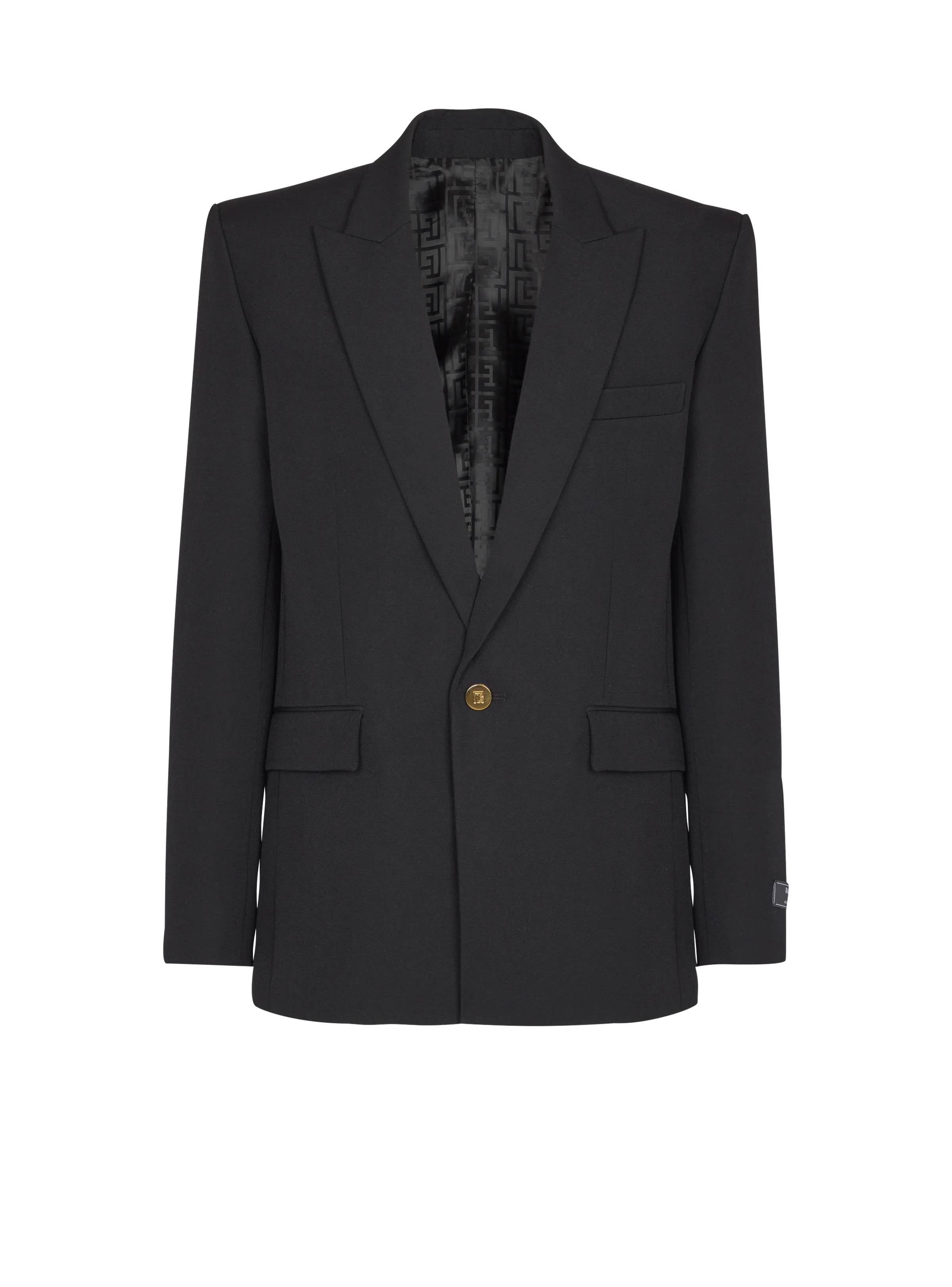 Grain de poudre wool 1-button jacket - Italian tailored collar - Long sleeves with buttons on the end - Chest pocket, welt side pockets with a flap - Single "Parfum" button fastening engraved with PB - Lined - Straight cut - Model measures 186cm and wears a size 48 - Main material: 100% sheep's wool - Made in Bulgaria - Item: FH0SE465WC09100% of the wool fibres used to make this garment are sourced from sheep farms that are certified and animal welfare-friendly