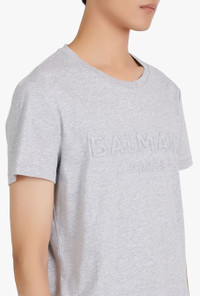 Heather gray cotton T-shirt with embossed Balmain Paris logo