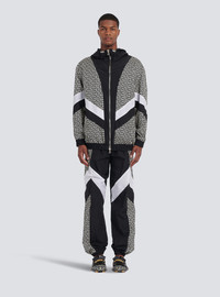 Hooded nylon jacket with Balmain monogram