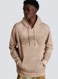 Hoodie in eco-responsible cotton with Balmain Paris desert logo print