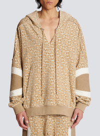 Hoodie with printed pyramid monogram inserts - Loose cut - long sleeves - V-neck - front pockets - hood with drawstring - Oversized cut - True to size (select your usual size) - The model is wearing a size M - The model’s height is 186 cm - Material: 92% viscose, 5% polyamide, 3% elastane - Made in France - Item: AH1JT165JF36