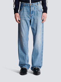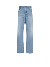 Jeans in contrast-effect denim - Straight cut - Button and invisible hook fastening at the front - 2 patch pockets at the sides, 1 patch pocket and 1 ripped rear pocket - Triple belt loops - Engraved metal Balmain mini plaque - Fade effect at the knees and hips - Model measures 189 cm and wears a size 30 - Material: 100% cotton - Made in Italy - Item: BH1ML062DD65