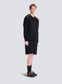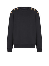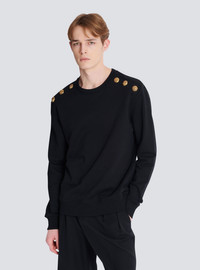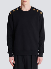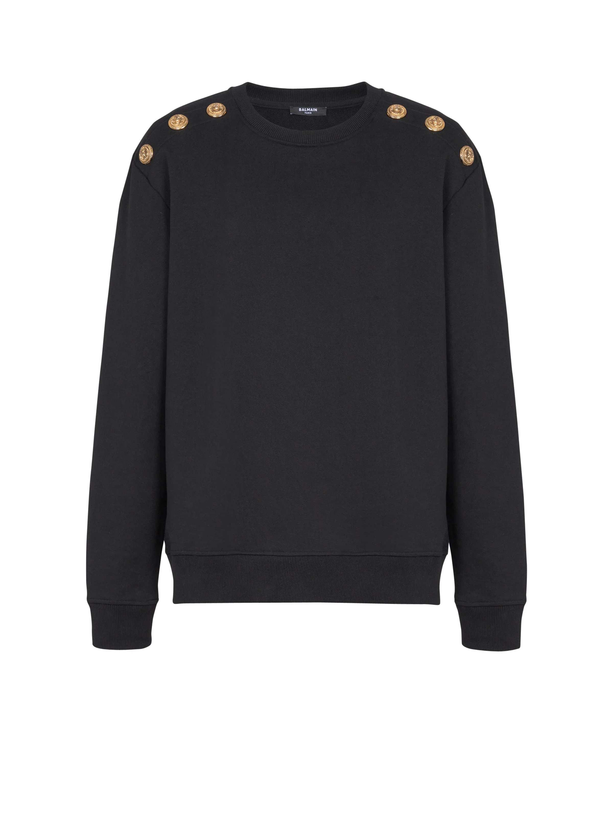 Sweater with buttons - Round neckline - 6 decorative "Chain Lion" buttons in gold metal on the shoulders - Long sleeves - Ribbed trim - Regular fit - Model measures 190cm and wears a size M - Main material: 100% cotton - Made in Portugal - Item: FH1JS155JB13100% of the cotton fibres used to make this garment are certified and organically farmed