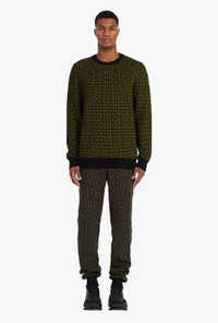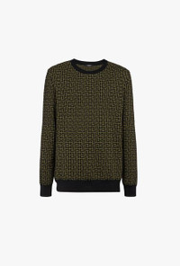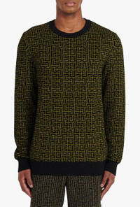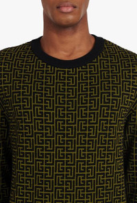 Khaki and black wool sweater with Balmain monogram