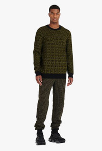 Khaki and black wool sweatshirt Long sleeves, ribbed finishes, crew neck, Balmain monogram print ITEM INFORMATION - Casual cut - Fits true to size, select your usual size - The model is wearing size M - The model's height is 186 cm / 6 ft 1 in, bust 93 cm / 36 in, waist 71 cm / 28 in, hips 89 cm / 35 in - Made in France - Materials: 55% Wool, 40% Linen, 5% Polyamide - Item: WH0KD000K020UEE