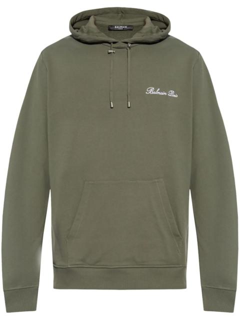 logo-embroidered drawstring hoodie Highlights - Olive green - Cotton - Embroidered logo at the chest - Drawstring hood - Front pouch pocket - Long sleeves - Ribbed cuffs and hem Imported Composition Cotton 100% SIZE & FIT Measurement CHEST 48.81 in(124 cm) LENGTH 30.11 in(76.5 cm) SLEEVE LENGTH 39.37 in(100 cm) Shoulder Width 20.07 in(51 cm) FittingInformation Designed for a relaxed fit, this piece allows for comfort and movement when worn The ribbed hem offers a close, comfortable fit Made from a midweight non-stretch fabric, this piece offers minimal elasticity when worn This piece fits true to size – take your usual size