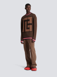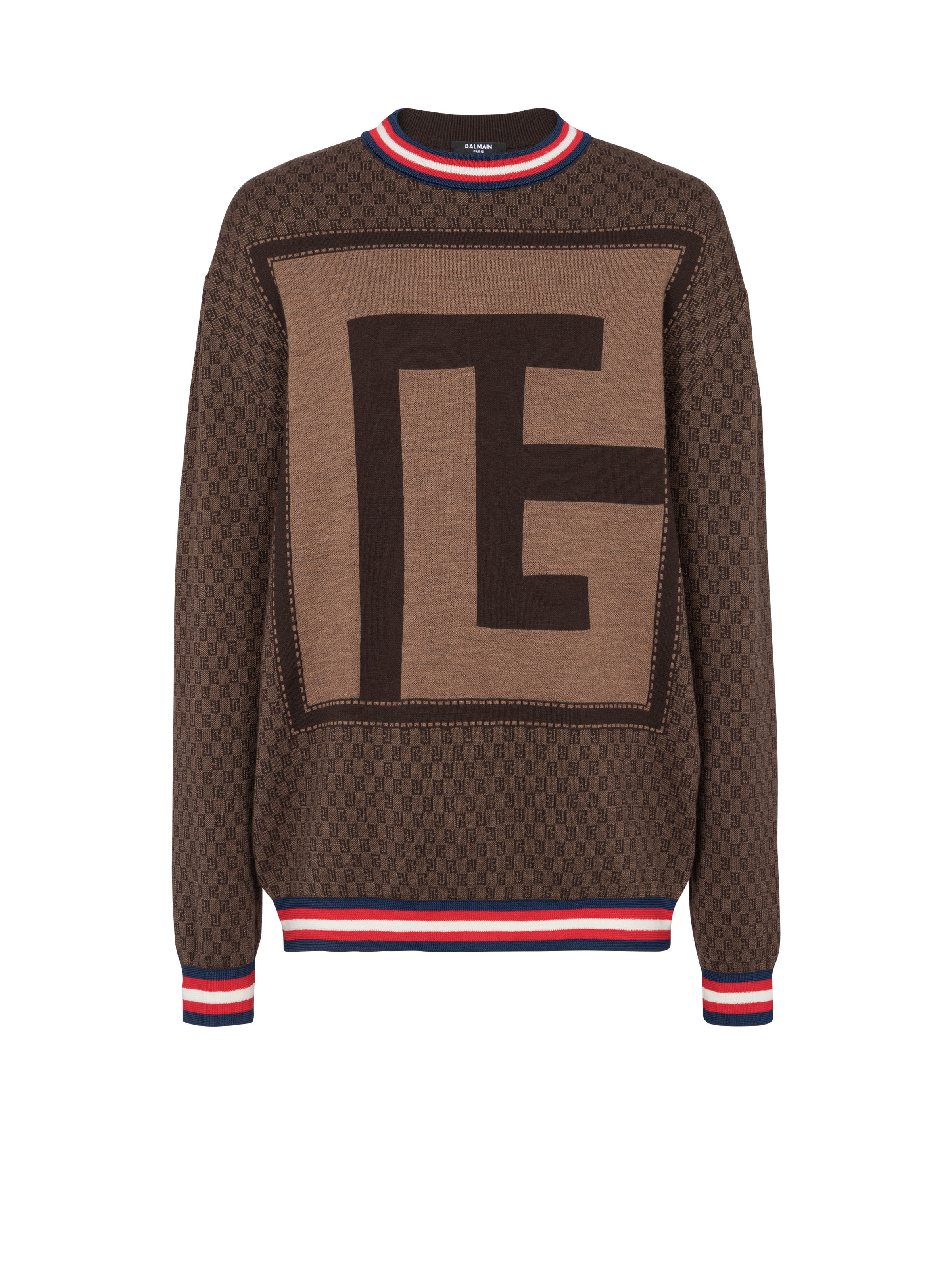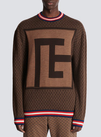 Mini monogram jacquard fine knit jumper - PB logo- Funnel neck - Contrasting tricolour ribbed cuffs, waist and collar - Model measures 187cm and wears a size M - Material: 100% mohair - Made in France - Item: BH0KE010KF40