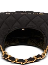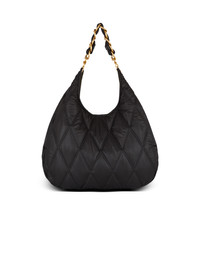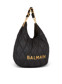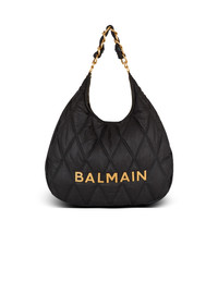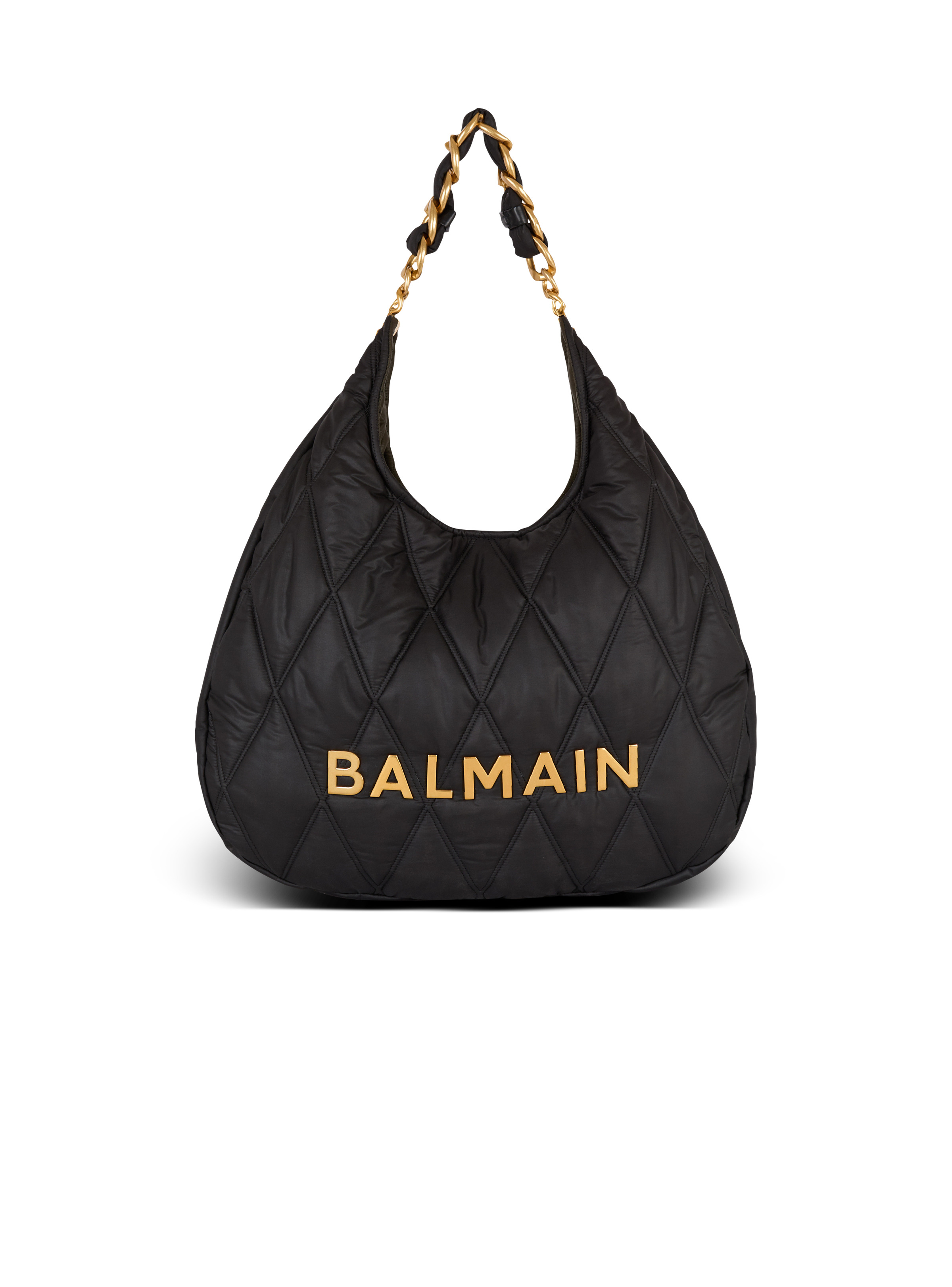 Large 1945 Hobo bag in diamond-quilted nylon - Carry in the hand or wear on the shoulder - Metal Balmain logo - Chain handle interlaced with nylon - Metal side plaque with engraved B buttons - Magnetic clasp - Nylon lining - Inside zipped pocket - Embossed leather card pocket - Gold hardware - Dimensions: 5.5 x 45.5 x 38 cm - Main material: 100% polyester - Made in Italy - Item: EM1BT241TNDT