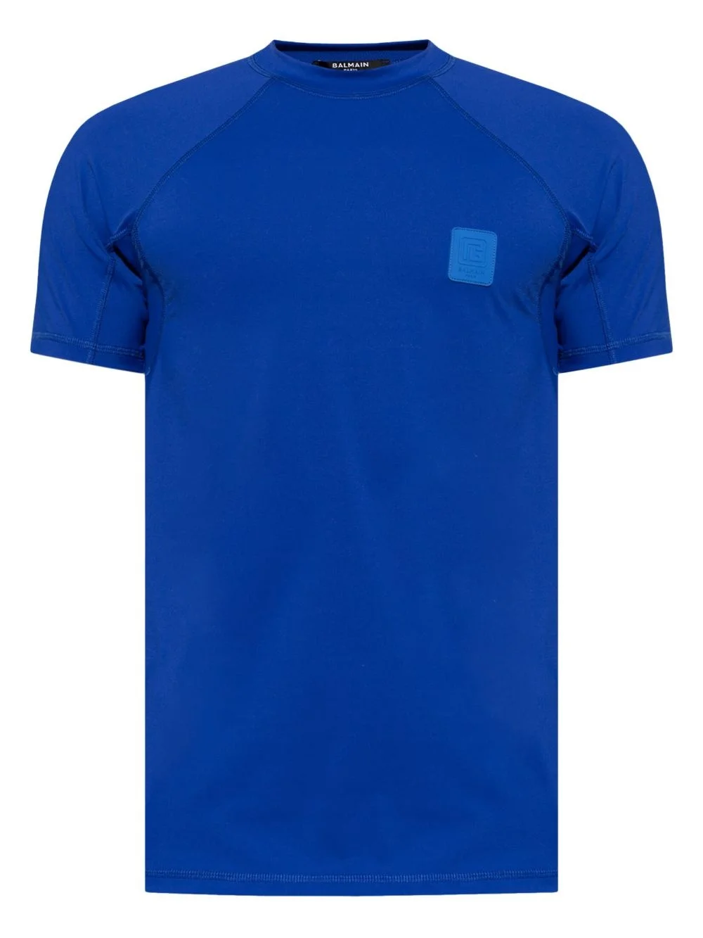 logo-applique swimming T-shirt Highlights - Cobalt blue - Crew neck - Short raglan sleeves - Straight hem Made in Italy Composition Polyamide 80%, Elastane 20%