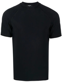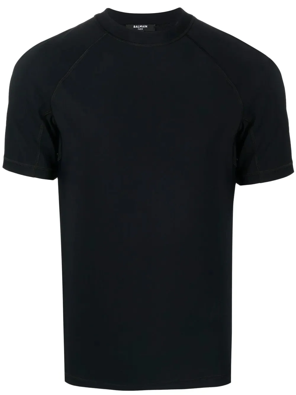 logo crew-neck T-shirt logo crew-neck T-shirt from Balmain featuring black, logo print to the rear, crew neck and short sleeves. Made in Italy Composition Polyamide 73%, Spandex/Elastane 27% SIZE & FIT Model measurements Height 6 ft 3 in(1.9 m) Bust/Chest 35.03 in(89 cm) Hips 36.22 in(92 cm) Waist 28.74 in(73 cm) FittingInformation This piece fits true to size. We recommend you get your regular size Cut for a close fit Made with a mid-weight stretch fabric