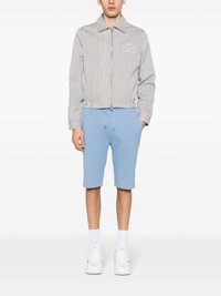 logo-flocked cotton track shorts Highlights - Sky blue - Organic cotton - Jersey texture - Flocked logo - Logo-engraved silver-tone hardware - Straight leg - Mid-rise - Elasticated drawstring waistband - Two diagonal pockets to the sides - Two rear patch pockets - Straight hem - French terry lining Imported Composition Outer: Organic Cotton 100% Lining: Organic Cotton 100% SIZE & FIT Model measurements Height 6 ft 2 in(1.87 m) Bust/Chest 36.41 in(92.5 cm) Hips 35.43 in(90 cm) Waist 29.52 in(75 cm) Measurement WAIST 29.92 in(76 cm) FRONT RISE 12.4 in(31.5 cm) FittingInformation A slim-fit design that sits comfortably just away from the leg Adjust this piece’s waistband to your preference using the drawstring Made from a midweight non-stretch fabric, this piece offers minimal elasticity when worn This piece fits true to size – take your usual size Washing instructions Machine Wash