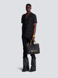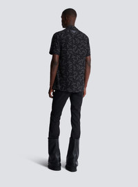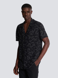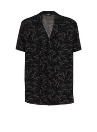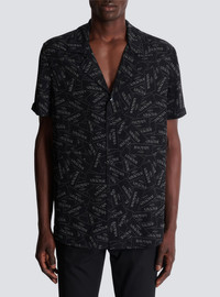 Pyjama shirt with all-over Balmain label print - Shirt collar - Short sleeves - Fastening with 5 engraved buttons - Woven Balmain Couture label on the back - Finished with piping at the front - Relaxed fit - Model measures 190cm and wears a size 48 - Main material: 100% viscose - Made in Slovakia - Item: EH1HN070VH56