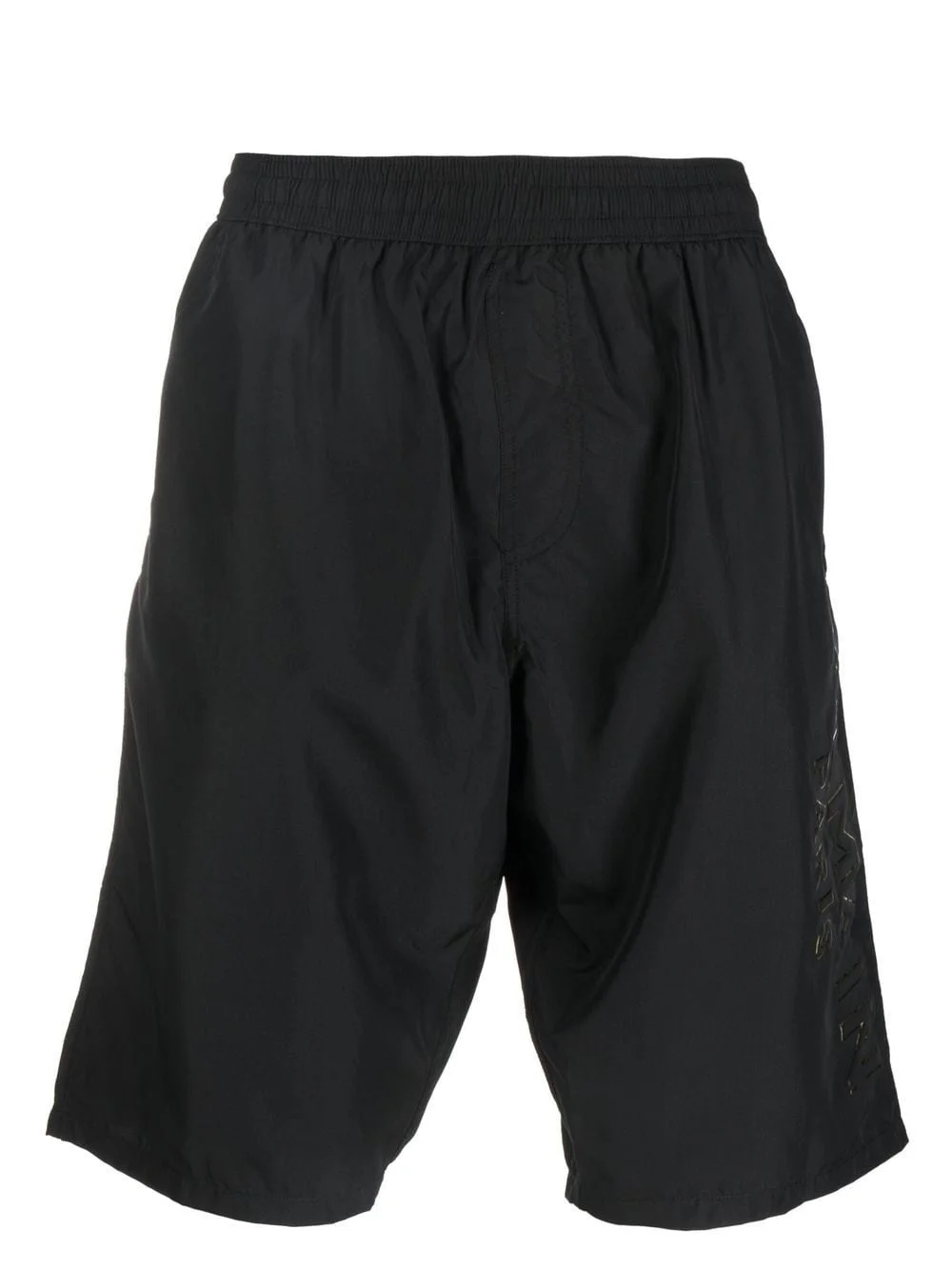 logo-print swim shorts Highlights - Jet black/gold-tone - Cotton blend - Logo patch to the side - Elasticated waistband - Two diagonal pockets to the sides - Knee-length - Be mindful to try on swimwear over your own garments. Made in Italy Composition Lining: Cotton 91%, Spandex/Elastane 9% Outer: Polyester 100% Washing instructions Machine Wash