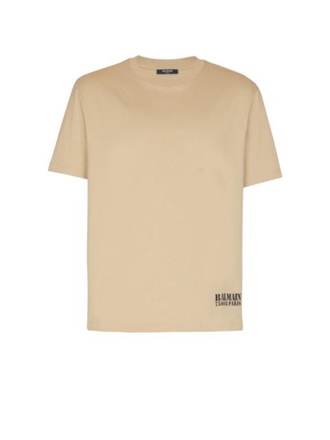 Balmain Lettre flocked T-shirt - Round neck with ribbed trim - Short sleeves - Contrasting printed flocked Balmain Lettre logo on the front - Regular fit - Model measures 190cm and wears a size M - Main material: 100% cotton - Made in Portugal - Item: FH1EG000BC86100% of the cotton fibres used to make this garment are certified and organically farmed