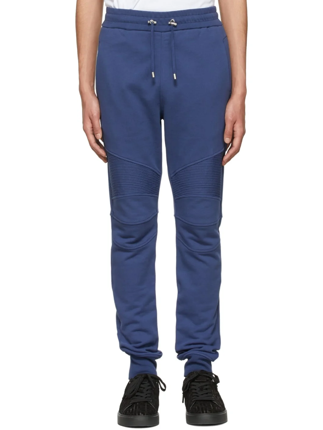 Paneled French terry lounge pants. · Drawstring at elasticized waistband · Ribbed panel at knees · Embroidered logo applique at back · Three-pocket styling · Rib knit cuffs Supplier color: Bleu marine 100% cotton. Made in Italy 221251M190016