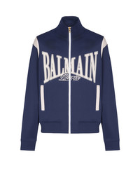 Zipped track-style jacket - High neck - Long sleeves with stripes at the shoulder seams - Printed Balmain College logo on the front - Side slash pockets - Zip fastening with engraved slider - Ribbed edging - Regular fit - Model measures 190cm and wears a size M - Main material: 73% polyester 25% viscose 2% elastane - Made in Portugal - Item: FH0TFA85BD29