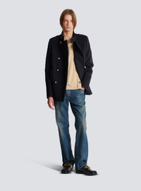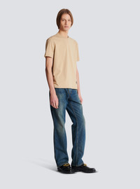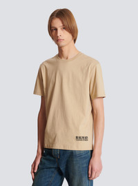 Small Balmain Stamp printed T-shirt - Round neck with ribbed trim - Short sleeves - Contrasting Small Balmain Stamp print on the side - Regular fit - Model measures 190cm and wears a size M - Main material: 100% cotton - Made in Portugal - Item: FH1EG000BD04100% of the cotton fibres used to make this garment are certified and organically farmed