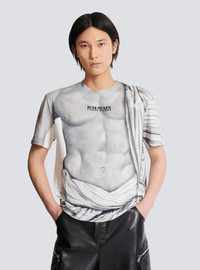 Logo T-shirt with Statue print - Round neck with ribbed trim - Short sleeves - Contrasting Balmain Stamp logo printed on the front - Regular fit - Model measures 190cm and wears a size M - Main material: 100% cotton - Made in Italy - Item: FH1EG000GF07100% of the cotton fibres used to make this garment are certified and organically farmed