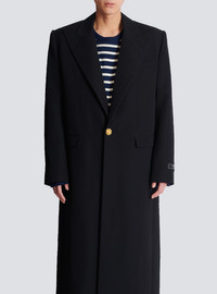 Long coat in grain de poudre wool - Tailored collar - Long sleeves with tabs on the cuffs - Welt side pockets with a flap - Single gold PB "Parfum" button - Lined - Straight cut - Model measures 186cm and wears a size 48 - Main material: 100% sheep’s wool - Made in France - Item: FH0UD355WC09100% of the wool fibres used to make this garment are sourced from sheep farms that are certified and animal welfare-friendly