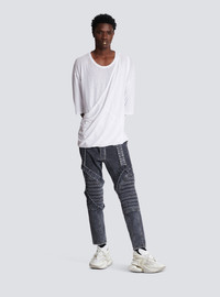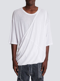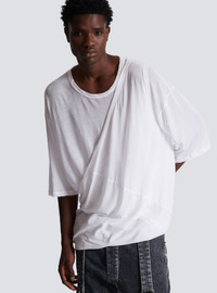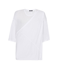 Long double thickness cotton T-shirt - Short sleeves - round neck - removable double-thickness shoulder strap - Relaxed fit - This item fits true to size (select your usual size) - The model is wearing a size S - The model's height is 177 cm - Material: 100% cotton - Made in Portugal - Item: AH1EH065JF06
