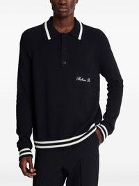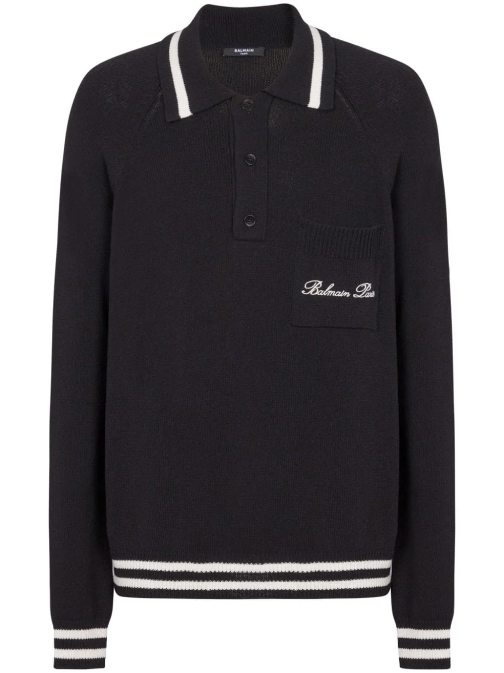 logo-embroidered long-sleeved polo shirt Highlights - Black - Embroidered logo at the chest - Striped border - Logo-engraved buttons - Polo collar - Front button placket - Chest patch pocket - Long sleeves - Ribbed cuffs and hem Made in France Composition Cotton 43%, Lyocell 43%, Polyamide 14% Washing instructions Specialist Cleaning