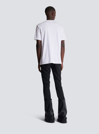 Embroidered T-shirt with Balmain "Love Letter" and Lips - Round neck with ribbed trim - Short sleeves - Balmain "Love Letter" logo and contrasting Lips embroidered on the front - Embroidery with beads, crystals and sequins - Regular fit - Model measures 190cm and wears a size M - Main material: 100% cotton - Made in India - Item: EH1EH170PC74