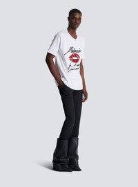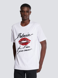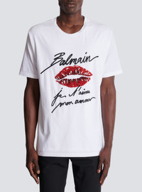 Embroidered T-shirt with Balmain "Love Letter" and Lips