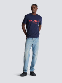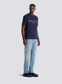 T-shirt with Balmain Paris print - Round neck with ribbed trim - Short sleeves - Contrasting Balmain Paris logo printed on the front - Regular fit - Model measures 190cm and wears a size M - Main material: 100% cotton - Made in Portugal - Item: FH1EG000BB73100% of the cotton fibres used to make this garment are certified and organically farmed