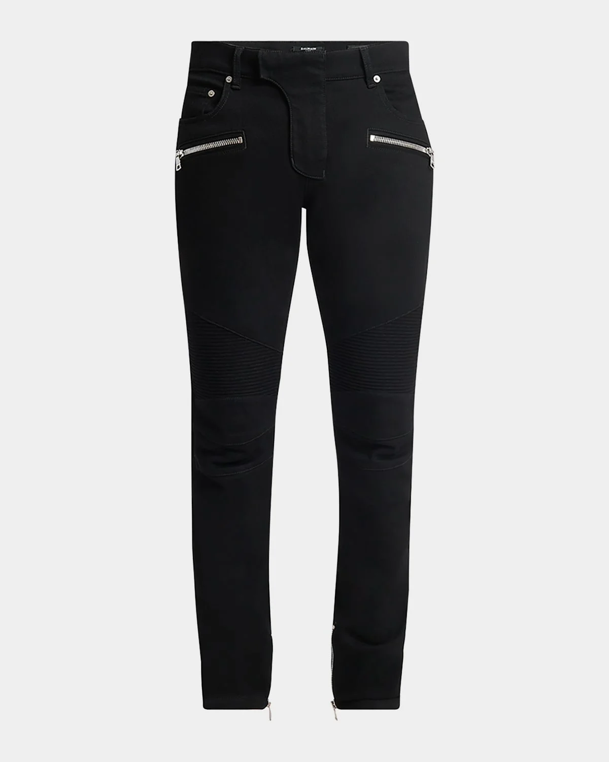 - Balmain jeans with moto-inspired ribbed panels and zipper details - Regular rise - Placket with zip and press-stud fastening - Triple belt loop on back - Slim fit - Polyester/cotton - Professional cleaning recommended - Made in Italy