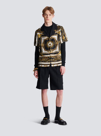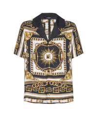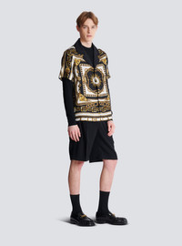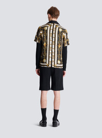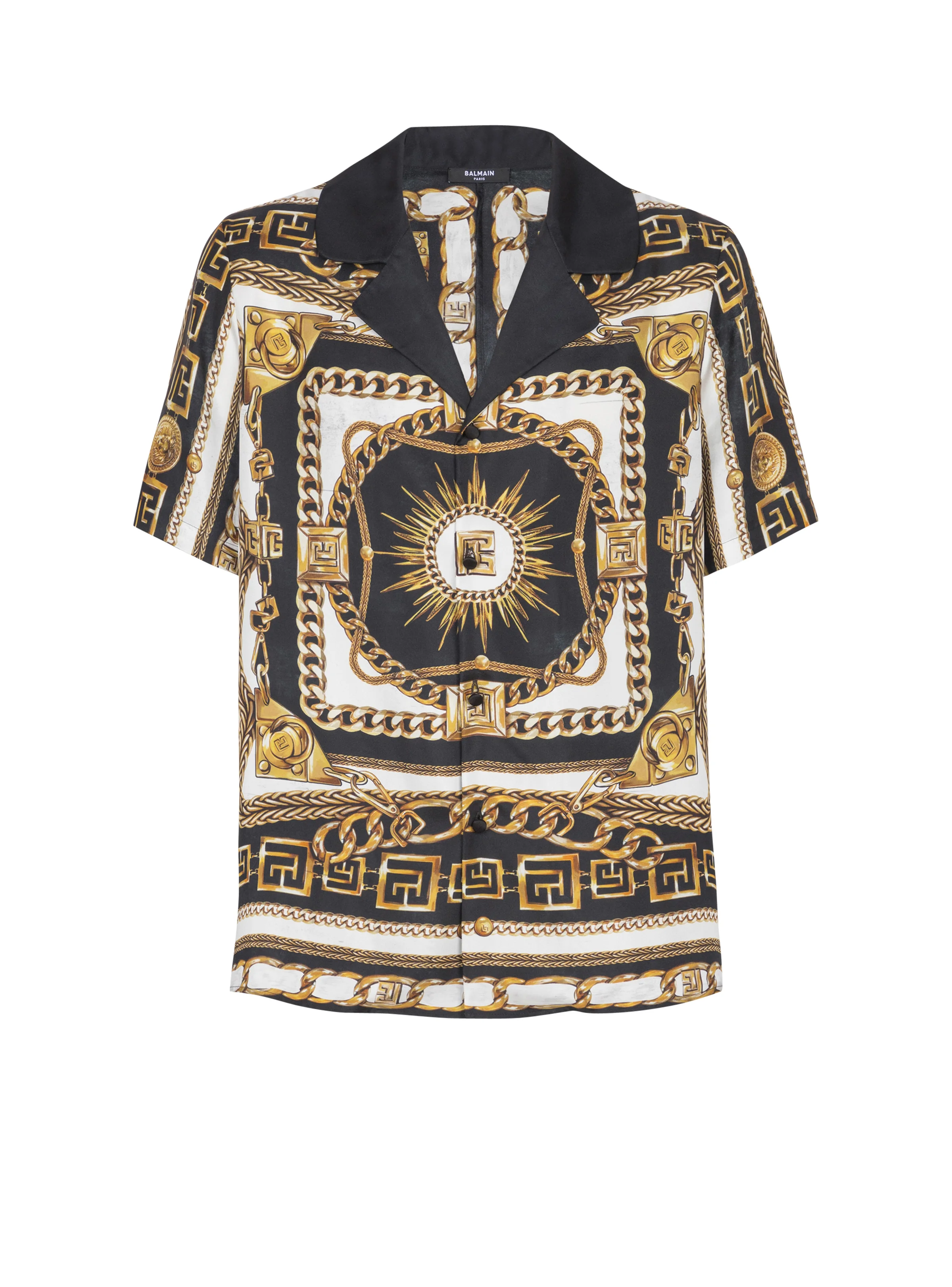 Printed twill pyjama shirt with Foulard Chaines pattern - Plain shirt collar - Short sleeves - Fastening with 4 covered buttons - PB and Balmain Paris logos worked into the pattern - Relaxed fit - Model measures 190cm and wears a size M - Main material: 100% viscose - Made in Italy - Item: FH1HN150VI41