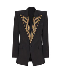 1-button jacket with embroidered collar