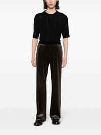 monogram-jacquard straight-leg trousers Balmain’s trousers are a sumptuous take on casual straight-leg styles. They’re crafted from brown velvet and adorned with a signature PB jacquard monogram – a labyrinth-inspired motif which nods to the founder’s initials. Highlights - Brown - Stretch-cotton - Velvet - Monogram jacquard - Elasticated waistband - Slip pockets to the sides - Straight leg Made in France Composition Body: Polyester 95%, Elastane 5% Trims: Viscose 65%, Cotton 28%, Polyamide 5%, Elastane 2% SIZE & FIT Model measurements Height 6 ft 2 in(1.87 m) Bust/Chest 33.07 in(84 cm) Hips 35.43 in(90 cm) Waist 26.77 in(68 cm) FittingInformation Designed for a relaxed straight leg, allowing a comfortable and loose fit over the leg The elasticated waist allows for a comfortable fit Made from a midweight stretch fabric, this piece offers elasticity and flexibility when worn This piece fits true to size – take your usual size