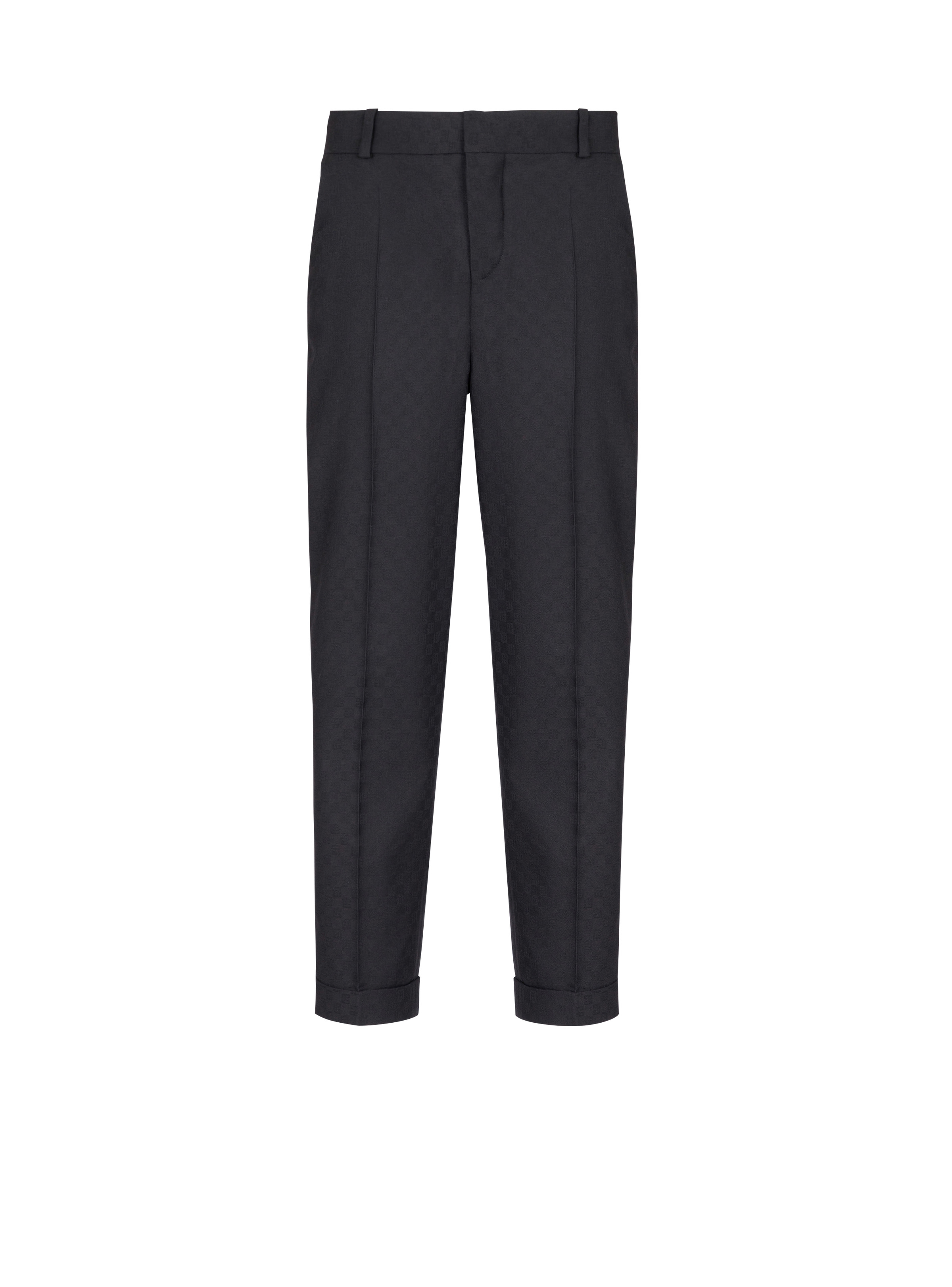 Pleated wool jacquard trousers - Tone-on-tone monogram jacquard - Straight cut - Turn-ups - Fastened with zip and invisible hook at the front - 2 slanted side pockets - Model measures 187cm and wears a size 48 - Main material: 100% wool - Made in Slovakia - Item: CH1PM030WC54