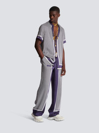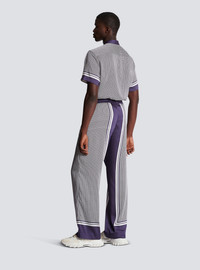 Casual trousers with monogram print - Relaxed fit - Printed monogrammed inserts down the sides of the legs - Drawstring-adjustable waist - Silver metal eyelets, stoppers and aglets - Pierre Balmain label detail printed on the side - Model measures 187 cm and wears a size 48 - Material: 100% polyester - Made in Italy - Item: BH1PQ260XG34 100% of the polyester fibres used to make this garment are recycled and GRS-certified