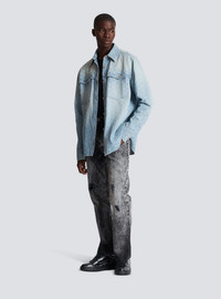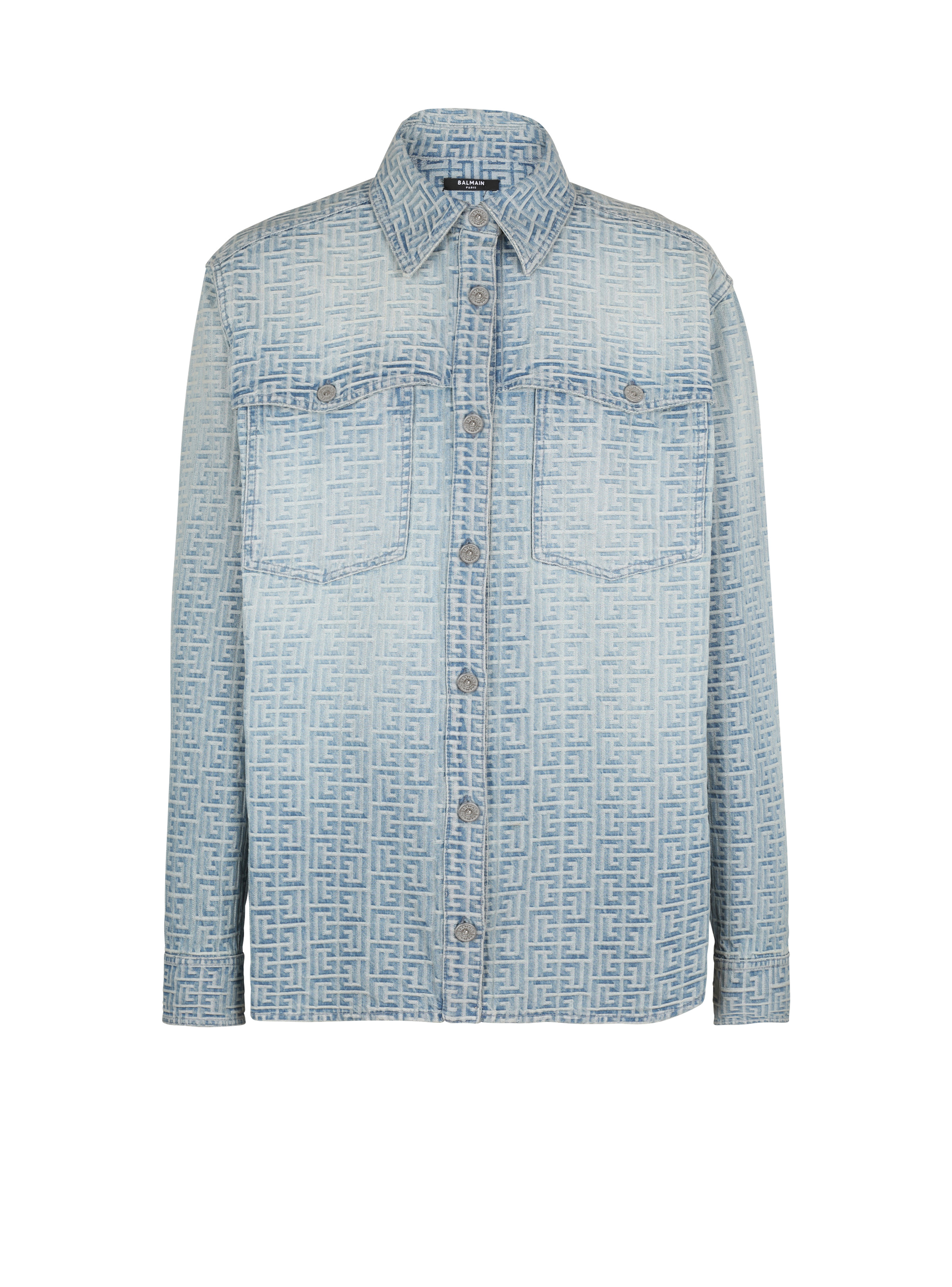 Monogrammed jacquard denim shirt - Slightly faded material - Straight cut - Long sleeves - Classic shirt collar - Fastened with 7 buttons at the front - 2 patch pockets on the front - Model measures 187 cm and wears a size 48 - Main material: 100% cotton - Made in Italy - Item: CH1HC088DD27