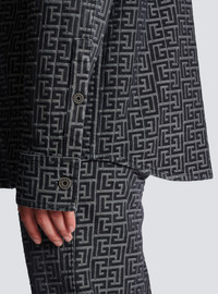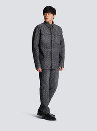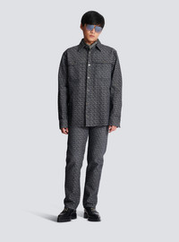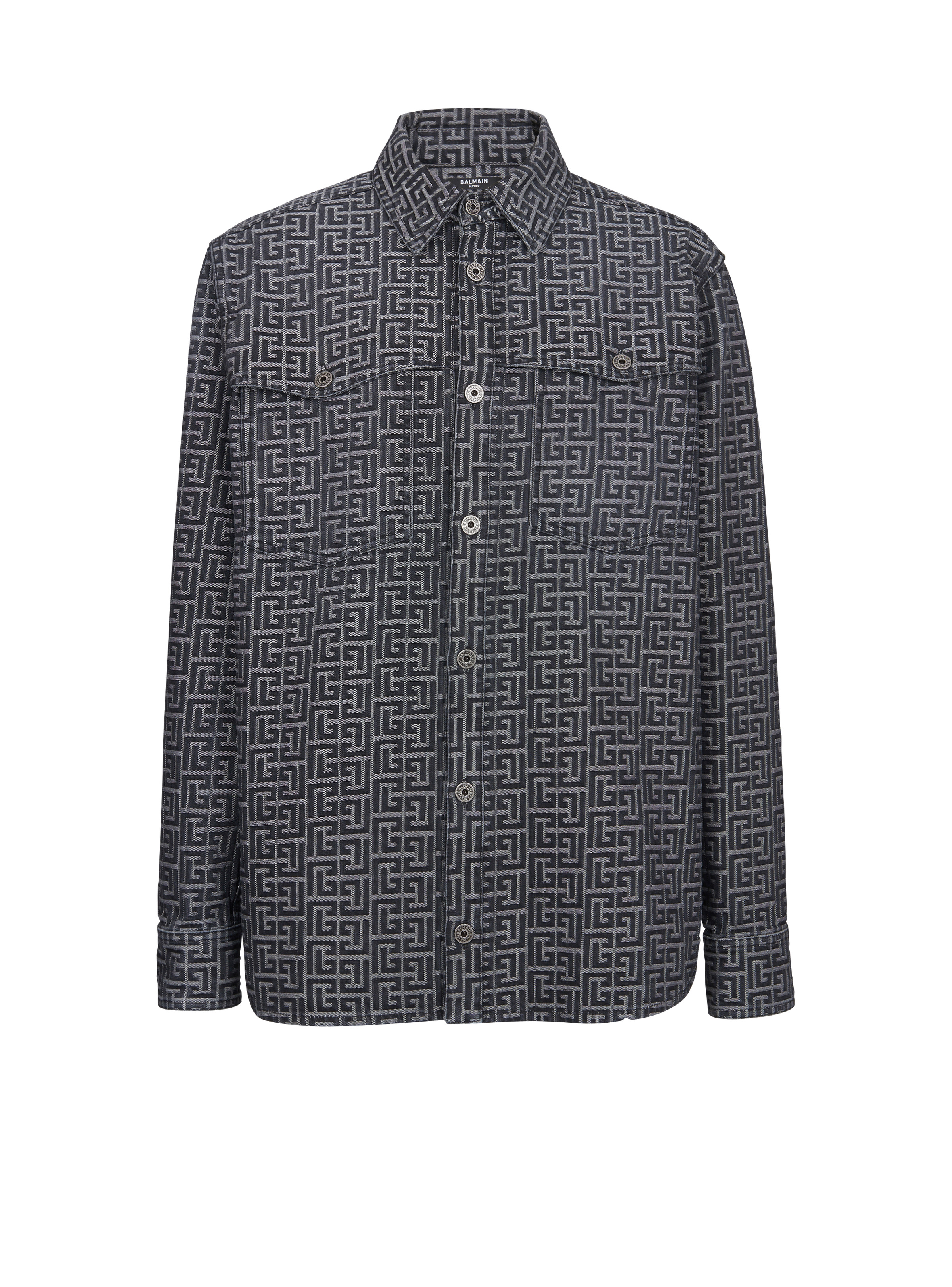 Raw denim shirt with jacquard monogram detail - Straight cut - Long sleeves - Classic shirt collar - Fastened with 7 buttons at the front - 2 patch pockets on the front - Model measures 187 cm and wears a size 48 - Material: 65% polyester, 35% elastane - Made in Italy - Item: BH1HC088DD68